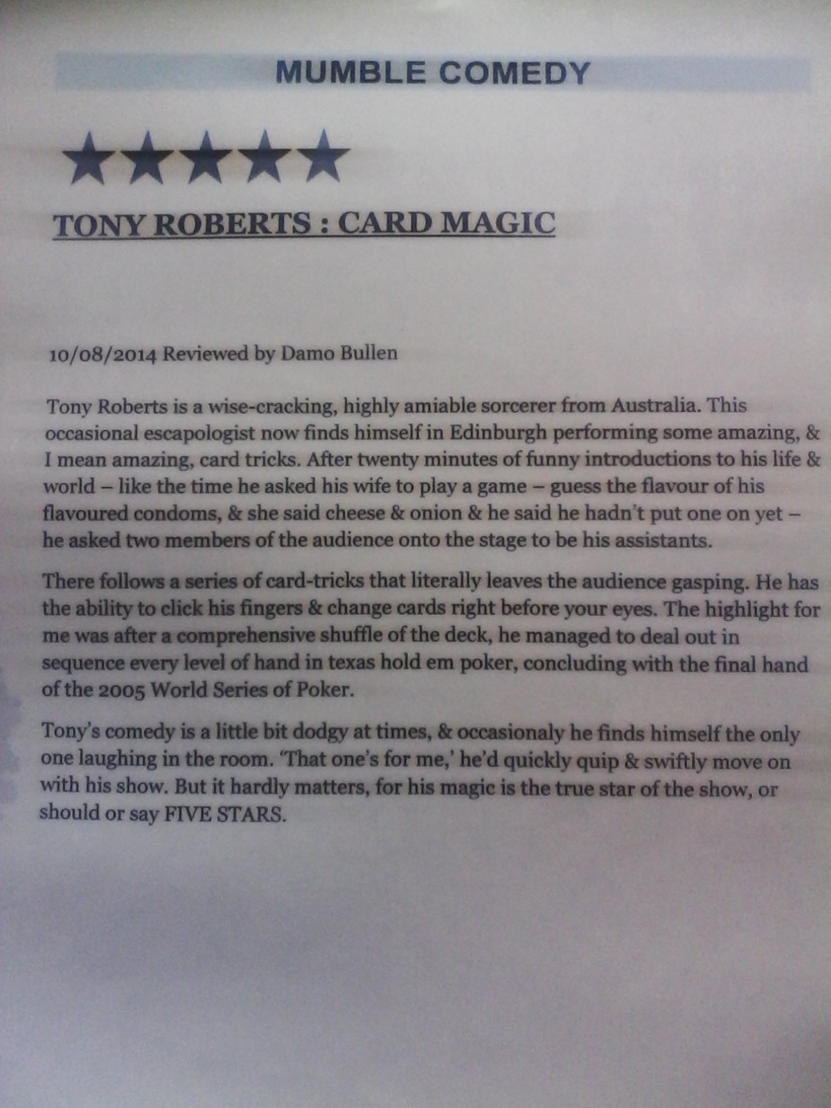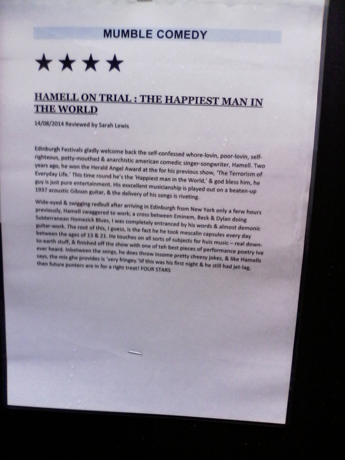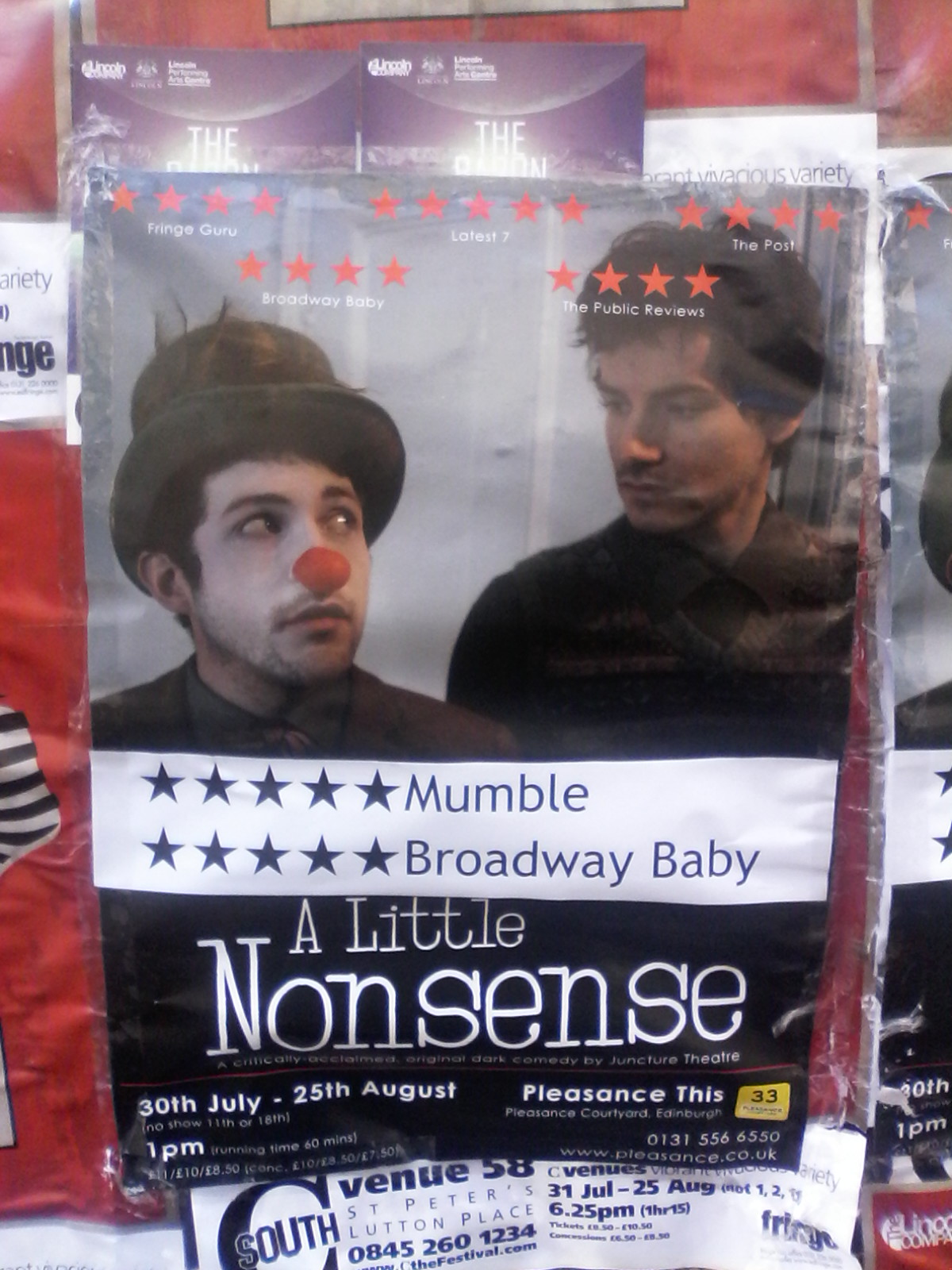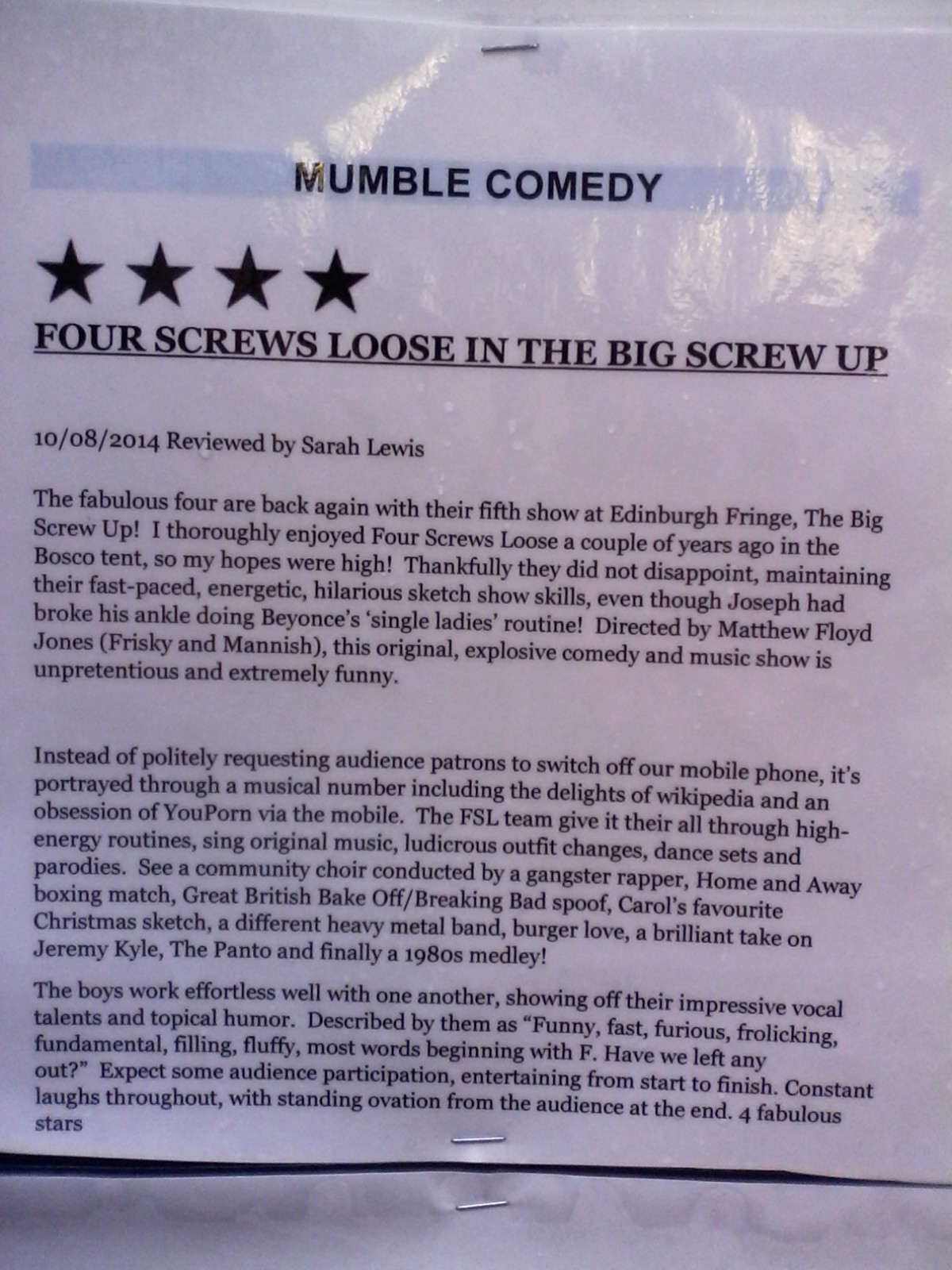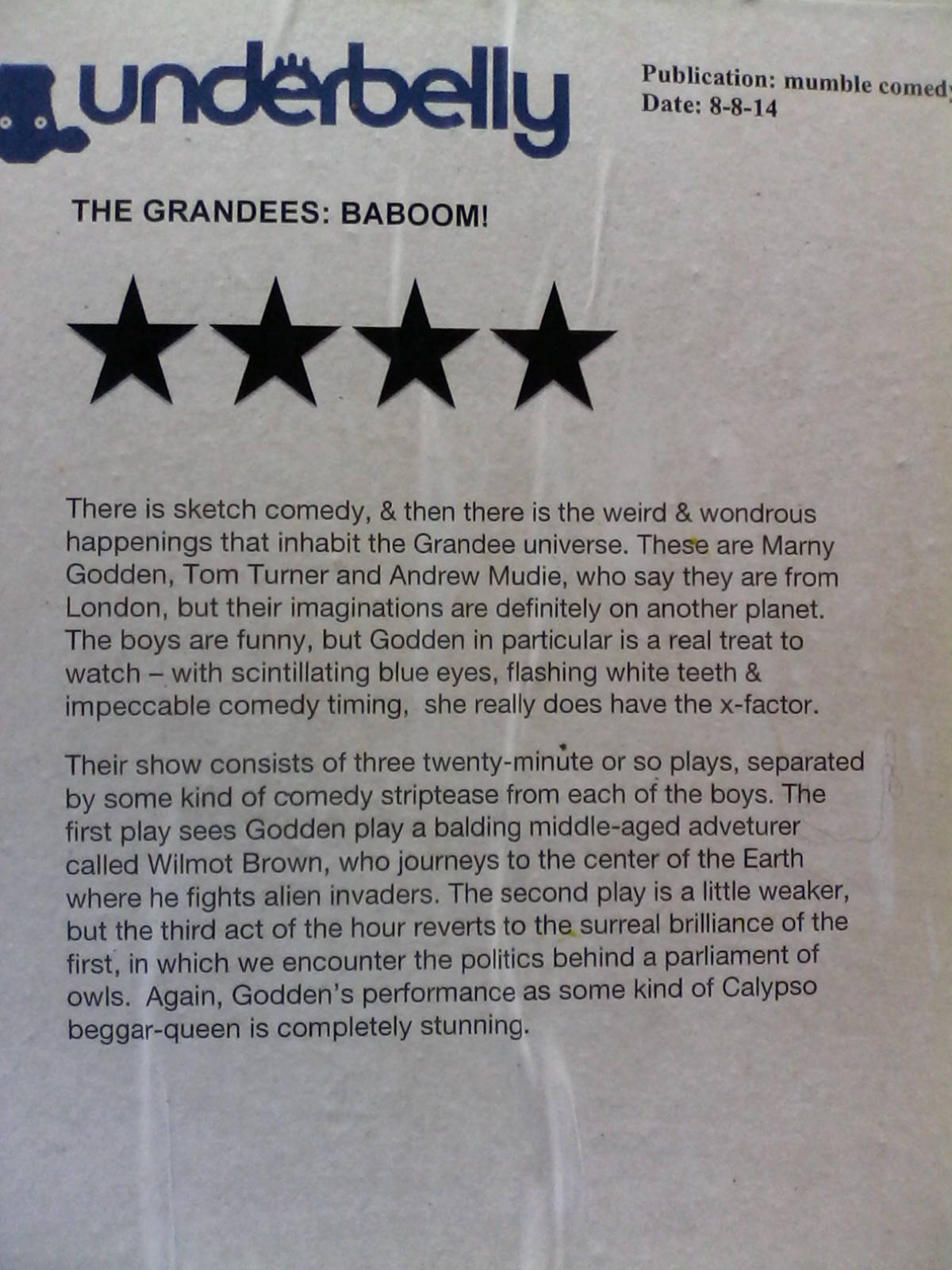 As I was watching their show, I couldn’t help but think this was themost fun I’d had with any of the ‘comedy’ shows, a matter of saving the best til last, perhaps. At the show commenced, they asked the audience who had seen them before, & uprose a glorious roar of happiness. the rest – myself included – were virgins. Come the end, I overheard a coupel of guys go, “if they were on next year would you come back?” – “yeah definitely!” I have to say, I agree.