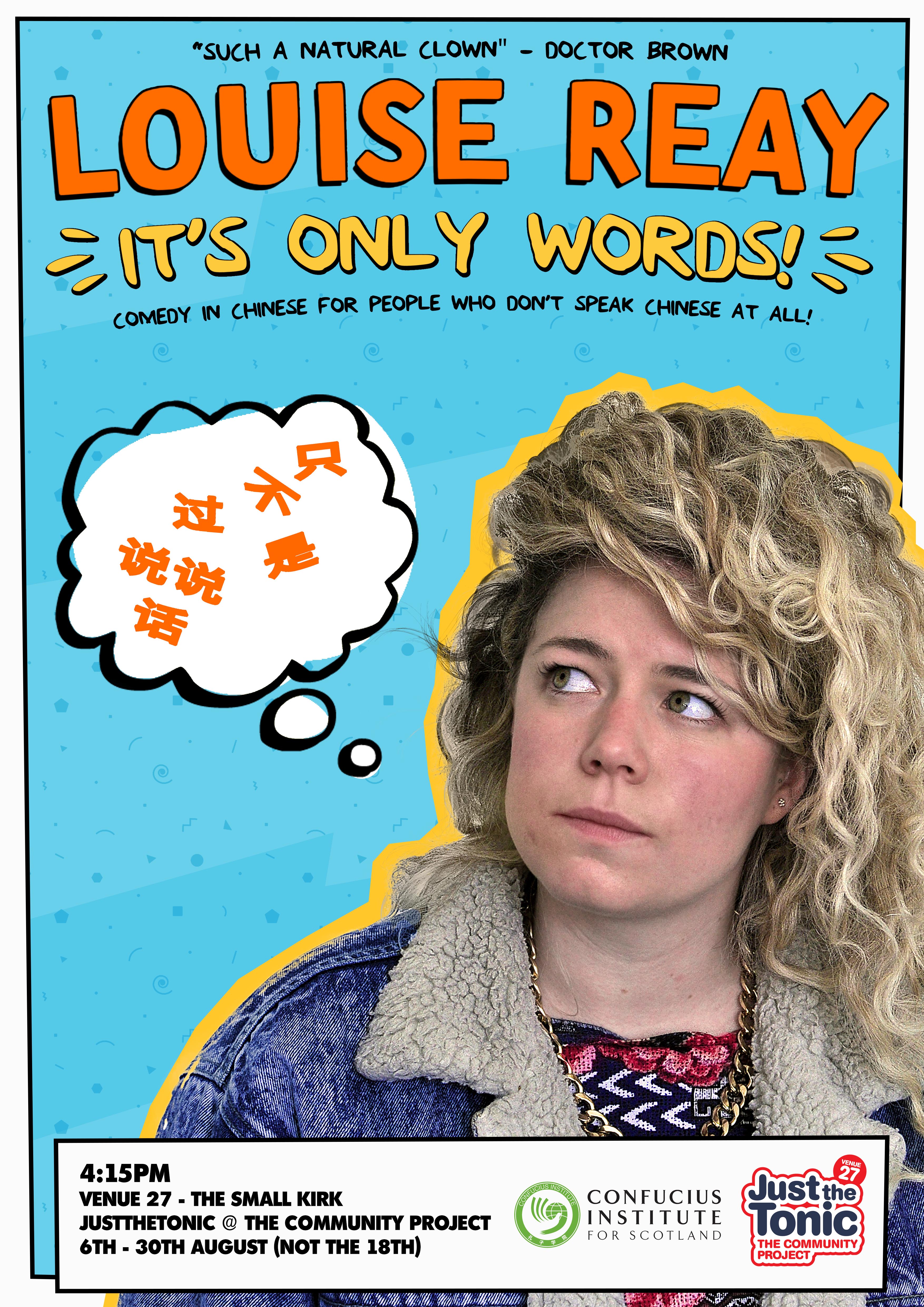 It’s Only Words is a first for the Edinburgh Fringe – a comedy show in Chinese for people who don’t speak any Chinese at all! This unique debut from comedian Louise Reay is based on the idea that only 7% of communication is verbal. Come and experiment with the remaining 93%! You’ll understand it, but you won’t know why. It’s Only Words plays with the audience’s preconceptions about humanity and communication through a mix of clowning and stand up.