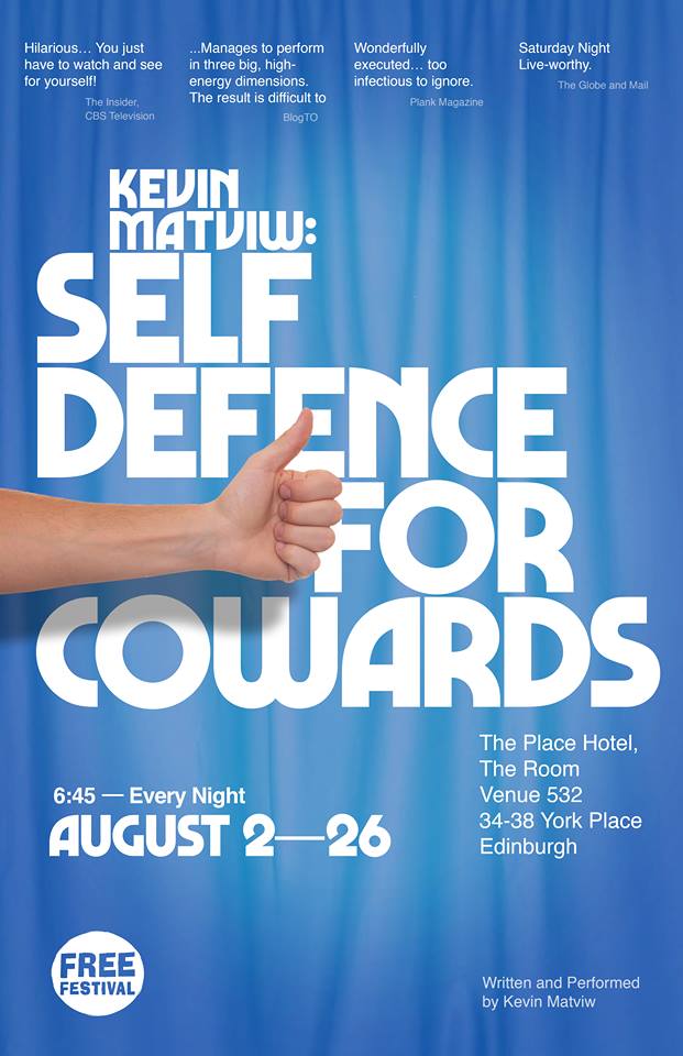 Kevin Matviw is from Canada, & is also a very brave man. Composing & performing a solo sketch show is a difficult artform, yet he does it so enthusiastically well! As he adds sound effects triggered by a foot pedal, Kevin invites the audience in on most occasions. It is rare that everyone wants to get up & make a fool of themselves during a show, but it felt like everyone in the audience were chomping at the bit to get involved. Self Defence For Cowards rolls thro’ multiple set pieces of various levels absurdity, the highlight of which was his 70s cop show, in which audience member Terry played an even more enthusiastic part. This is a perfect show for a few pals or a family who want to sit down together in a more relaxed frame of mind than having to listen to a soliloquizing comedian of random quality. Kevin has quality &, in the current climate, a quite unique show which is well worth a watch.